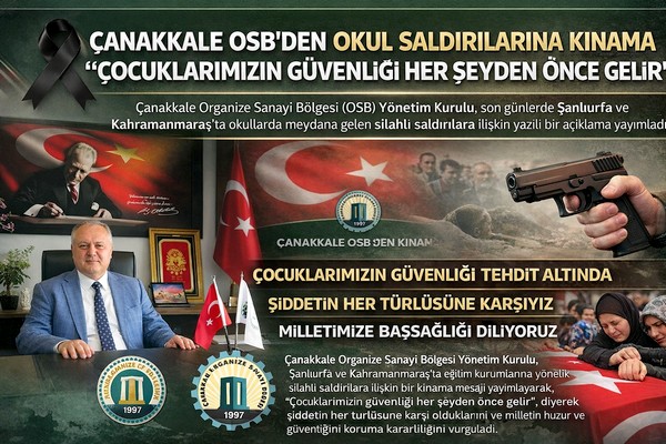 Çanakkale OSB Yönetimi, Şanlıurfa ve Kahramanmaraş’ta okullarda yaşanan silahlı saldırılara sert tepki göstererek, eğitim kurumlarının hedef alınmasının kabul edilemez olduğunu...