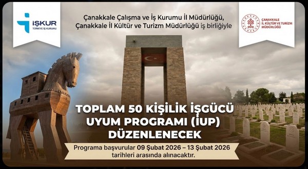 Çanakkale Çalışma ve İş Kurumu İl Müdürlüğü ile Çanakkale İl Kültür ve Turizm Müdürlüğü iş birliğinde, 50 kişilik İşgücü Uyum Programı (İUP) hayata geçiriliyor. Program kapsamında, kültür ve turizm alanında kamu hizmetlerine destek sağlanırken iş arayan vatandaşlara geçici istihdam imkânı sunulması amaçlanıyor.