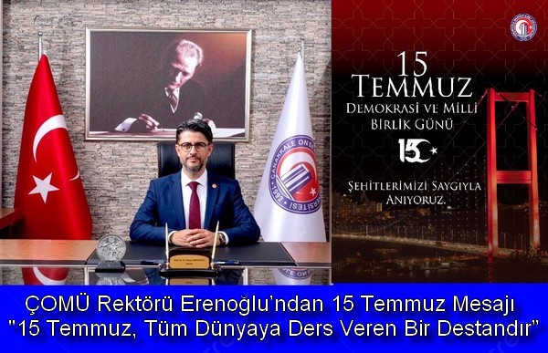 Çanakkale Onsekiz Mart Üniversitesi (ÇOMÜ) Rektörü Prof. Dr. R. Cüneyt Erenoğlu, 15 Temmuz Demokrasi ve Millî Birlik Günü dolayısıyla bir mesaj yayımladı.
