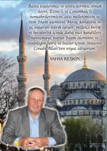 700 Sayılı Ezine Yağlı Tohumlar Tarım Satış Kooperatifi Başkanı Yahya Keskin, Miraç Kandili dolayısıyla bir mesaj yayınladı. Keskin mesajında şunları...