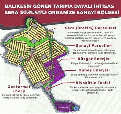 Cumhurbaşkanımız Sayın Recep Tayyip Erdoğan’ın liderliğinde, milletvekillerimizin büyük gayretleri ve özverili çalışmaları sayesinde bu dev proje, Balıkesir tarımına modernizasyon, üretim ve istihdam anlamında yeni bir dönemin kapısını aralayacak. Jeotermal enerji, biyokütle ve yenilenebilir enerji kaynaklarından faydalanılarak ısıtılacak modern seralar, tohum, fide, sebze ve meyve üretiminde ülkemize önemli bir katkı sunacaktır.
