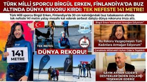 Türk Milli sporcu Birgül Erken, Finlandiya'da 30 cm kalınlığındaki buz tabakasının altında tek nefesle 141 metre yatay mesafe kat ederek...