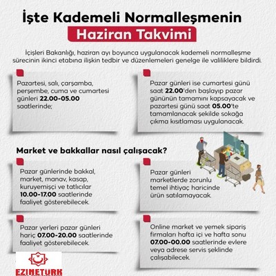 Türkiye’de 1 Haziran’dan itibaren yeni kademeli normalleşme süreci başladı. İçişleri Bakanlığı, valiliklere gönderdiği “Haziran Ayı Normalleşme Tedbirleri” konulu genelge ile değişen uygulamaların detaylarını duyurdu.