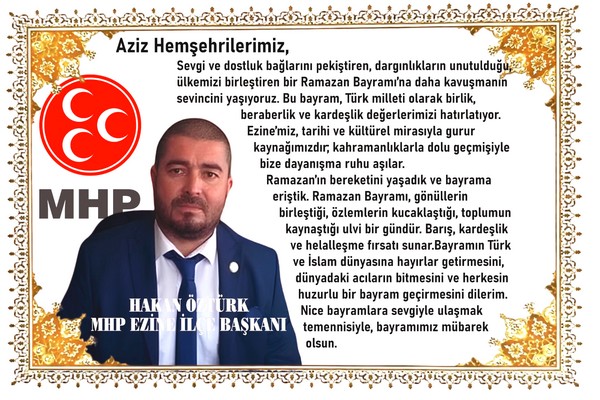 Milliyetçi Hareket Partisi Ezine İlçe Başkanı ahakan Öztürk, Ramazan Bayramı dolayısıyla kutlama mesajı yayınladı.