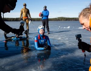 Türk Milli sporcu Birgül Erken, Finlandiya’da 30 cm kalınlığındaki buz tabakasının altında tek nefesle 141 metre yatay mesafe kat ederek serbest dalışta dünya rekoruna imza attı.