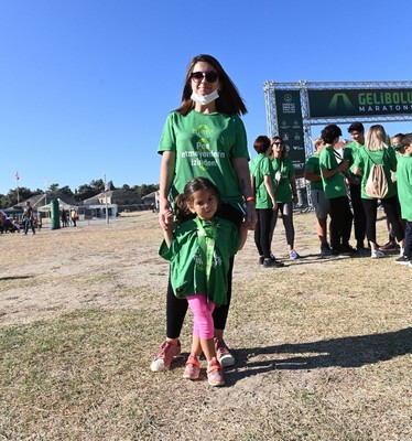 Maratona katılan İpek Yılmaz ise, 1915 metre Saygı Koşusu’na, bebek arabasındaki 3,5 aylık oğlu Ayaz Alp ile birlikte katıldı.