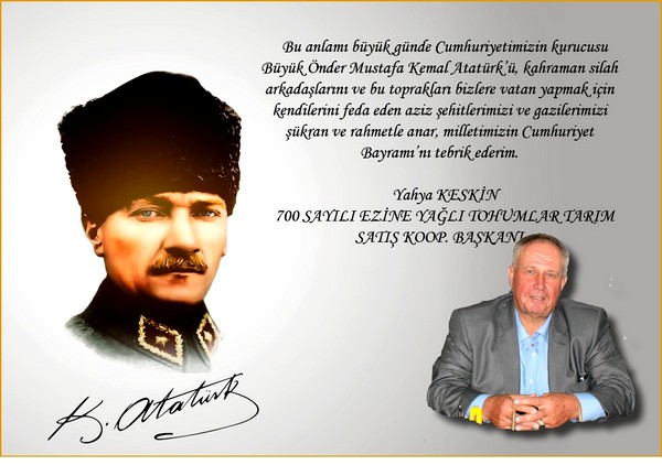 700 Sayılı Ezine Yağlı Tohumlar Kooperatifi Başkanı Yahya Keskin, Cumhuriyet Bayramı dolayısıyla bir mesaj yayınladı.
